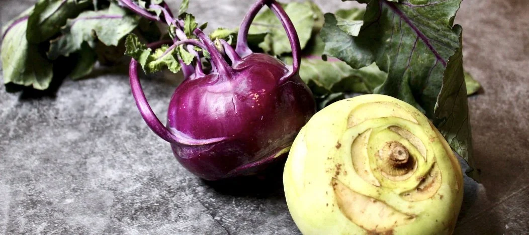 The word kohlrabi is derived from the German words kohl, meaning cabbage, and rube, which means turnip. This curious looking vegetable is a member of the Brassicaceae family. Kohlrabi is rich in folate and vitamin C as well as soluble and insoluble fibre. Like all cruciferous vegetables, kohlrabi contains a compound called sulphoraphane which can neutralise toxins, protect cells and reduce inflammation. The leaves and the bulbous stem are edible which makes this vegetable very versatile.